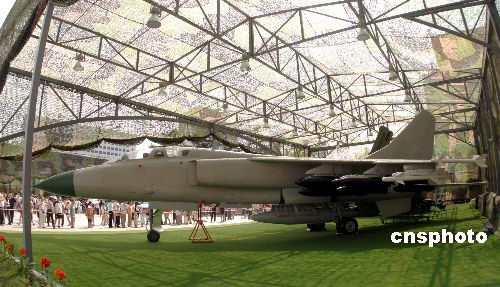 2007年7月中旬,在中國人民革命軍事博物館舉行的新中國成立以來國防和軍隊建設成就展吸引眾多民眾參觀。圖為中國自行研制的飛豹戰機亮相展會。 中新社發 鄒憲 攝