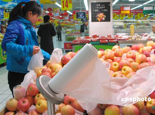 中國國務(wù)院辦公廳日前向各省、自治區(qū)、直轄市人民政府,國務(wù)院各部委、各直屬機(jī)構(gòu)下發(fā)《關(guān)于限制生產(chǎn)銷售使用塑料購物袋的通知》。自2008年6月1日起,在所有超市、商場(chǎng)、集貿(mào)市場(chǎng)等商品零售場(chǎng)所實(shí)行塑料購物袋有償使用制度,一律不得免費(fèi)提供塑料購物袋。 中新社發(fā) 吳芒子 攝