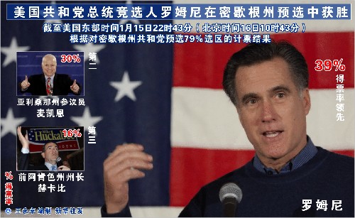 圖表:美國共和黨總統競選人羅姆尼在密歇根州預選中獲勝 新華社發