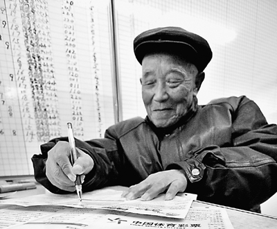 一位老人在投注江蘇南京市體育彩票推出的高頻彩票。劉 莉攝