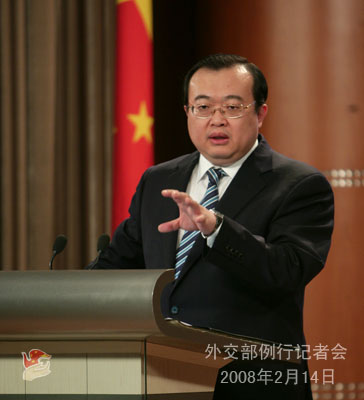 2008年2月14日下午,外交部發(fā)言人劉建超主持例行記者會(huì),就北京奧運(yùn)會(huì)、達(dá)爾富爾、緬甸、日本餃子事件等問題回答記者提問。
