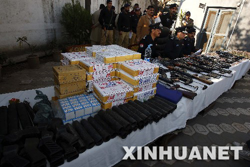 2月17日,巴基斯坦警方在拉瓦爾品第市警察局舉行違禁武器清剿新聞發(fā)布會(huì)。巴基斯坦議會(huì)選舉將于2月18日舉行,全國(guó)將開放3.58萬個(gè)投票站。屆時(shí)將有8千多萬名選民參加投票。警方在投票站部署大量警力,以保障投票的順利進(jìn)行。 新華社記者才揚(yáng)攝