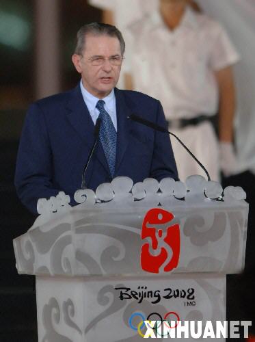 圖為2007年8月8日,國(guó)際奧委會(huì)主席羅格在活動(dòng)中致辭。當(dāng)晚,北京2008年奧運(yùn)會(huì)倒計(jì)時(shí)一周年慶祝活動(dòng)在天安門廣場(chǎng)舉行。 新華社記者羅曉光攝