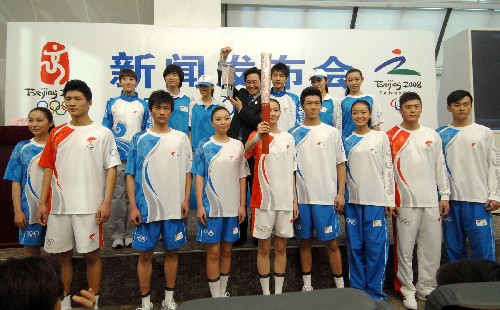 1月16日,模特在展示火炬接力服裝。當日,北京奧運會火炬接力形象景觀在北京奧運新聞中心公布。北京奧運會火炬接力形象景觀以奧運五環(huán)、火炬接力標志、主題口號、核心圖形和色彩為基礎元素,以鳳紋、祥云、中國紅為創(chuàng)意來源,充分體現(xiàn)奧林匹克精神與中國文化的結(jié)合,具有強烈的時代特色。 新華社記者 羅曉光 攝