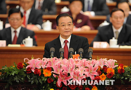 3月5日,第十一屆全國人民代表大會第一次會議在北京人民大會堂開幕。國務院總理溫家寶代表國務院向大會作政府工作報告。 新華社記者李學仁攝