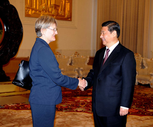 3月26日,國(guó)家副主席習(xí)近平在北京人民大會(huì)堂會(huì)見(jiàn)到訪的美國(guó)哈佛大學(xué)校長(zhǎng)德魯·吉爾平·福斯特。新華社記者 高潔 攝