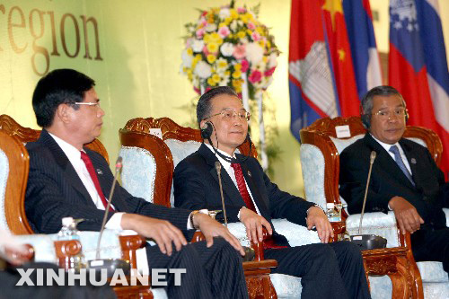 3月30日,中國國務院總理溫家寶在老撾首都萬象出席大湄公河次區(qū)域領導人與工商界代表對話會。 新華社記者 劉衛(wèi)兵 攝