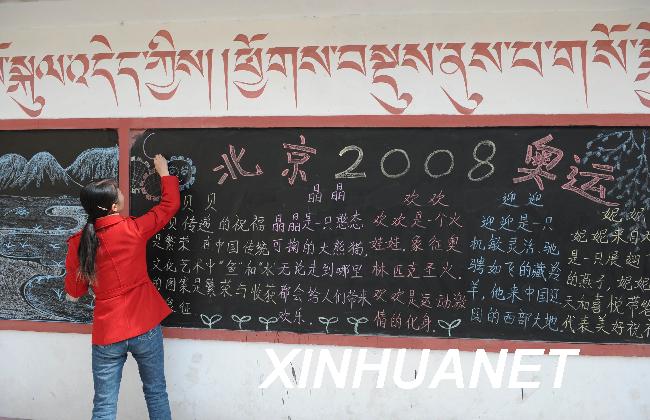【資料圖片】3月28日,甘肅省甘南藏族自治州夏河縣拉卜楞藏民小學三年級老師趙彩霞在畫黑板報。據甘肅甘南藏族自治州政府介紹,截至3月28日上午,當地因為打砸搶燒而被迫停課的64所學校已經全面復課,全州712所學校目前教學秩序井然。據了解,發生打砸搶燒事件以來,甘南州共有64所學校被迫暫時停課。參與打砸搶燒的不法分子將學校作為沖擊的目標之一。 新華社記者韓傳號攝