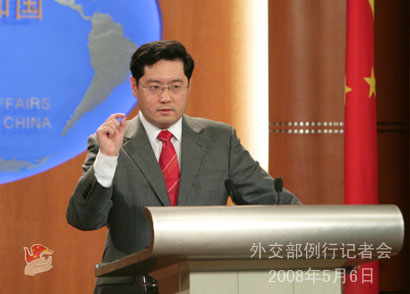 2008年5月6日,外交部發(fā)言人秦剛舉行例行記者會,就胡錦濤主席訪日、中央有關(guān)部門負責人與達賴方面的接觸、伊朗核問題等回答了記者提問。
