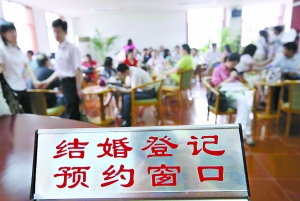 進(jìn)入8月以來(lái),到濟(jì)南市各區(qū)婚姻登記處辦理預(yù)約登記的新人就一直絡(luò)繹不絕。記者近日在濟(jì)南市市中區(qū)婚姻登記處看到,不出半個(gè)小時(shí),就有兩三對(duì)新人前來(lái)預(yù)約8月8日登記結(jié)婚。