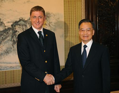 新華社北京8月14日電 (記者李詩佳)國務院總理溫家寶14日在中南海紫光閣會見了前來觀看北京奧運會比賽的匈牙利總理久爾恰尼。