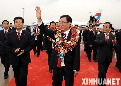 9月22日,以中共中央政治局常委、中央紀委書記賀國強為團長的中央代表團乘專機抵達銀川,參加寧夏回族自治區成立50周年慶;顒。新華社記者 高潔 攝