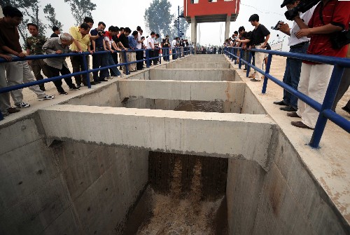 這是南水北調(diào)中線京石段應(yīng)急供水工程北京西四環(huán)暗涵出口處(9月26日攝)。為了彌補2008年北京市當(dāng)?shù)毓┧吹氐墓┧笨冢颖笔⊥ㄟ^南水北調(diào)中線京石段應(yīng)急供水工程總干渠,向北京供水。 這次調(diào)水水源地為河北省崗南、黃壁莊和王快三座大型水庫,調(diào)水目的地為北京市團城湖。調(diào)水從2008年9月18日開始放水,28日進入北京,至2009年3月中下旬放水結(jié)束,歷時6個月。按計劃,三座水庫調(diào)水總量為3億立方米,水庫水質(zhì)均為三類以上,符合向北京供水的水質(zhì)要求。新華社記者 熊德 攝