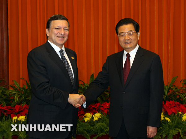 10月23日,中國國家主席胡錦濤在北京人民大會堂會見前來出席第七屆亞歐首腦會議的歐盟委員會主席巴羅佐。 新華社記者劉衛兵攝