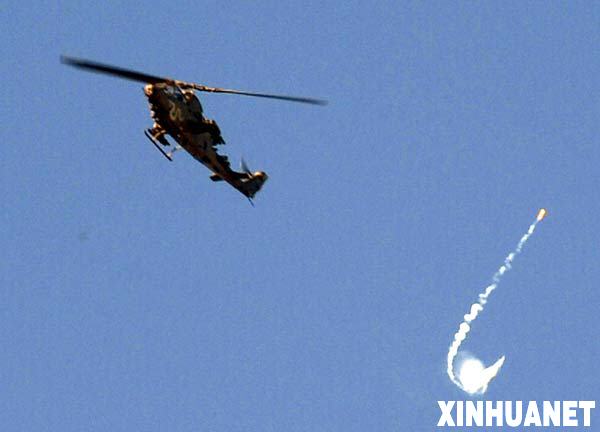 12月28日,一架以色列直升機在加沙地帶上空發射火箭。 新華社記者 殷博古攝