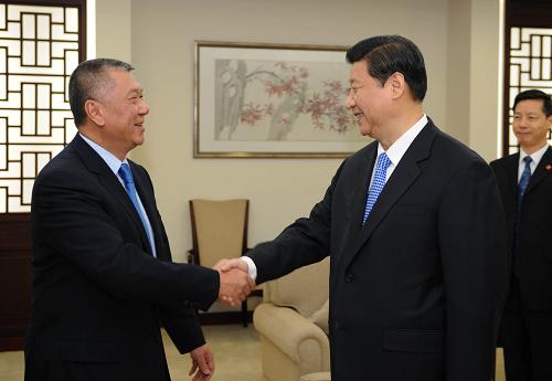 1月10日,國家副主席習近平在澳門東亞運動會體育館禮堂親切會見澳門社會各界代表人士。這是習近平和全國政協常委何鴻燊握手。新華社記者 馬占成攝