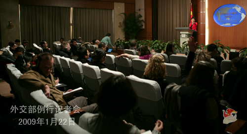 2009年1月22日,外交部發言人姜瑜舉行例行記者會,主要就中美、中法關系,中東局勢等答記者問。