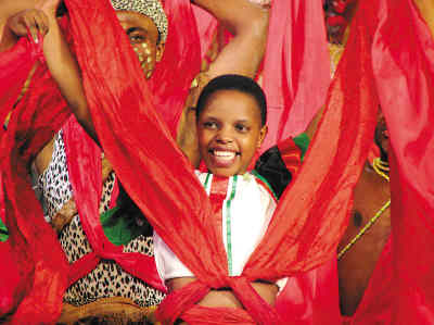 非洲少女熱情奔放的紅綢舞。文化部供圖