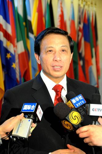 2月19日,在紐約聯合國總部,中國常駐聯合國代表張業遂接受媒體采訪。張業遂當日在第63屆聯合國大會關于安理會改革問題的非正式全會上發言時說,安理會改革應優先解決發展中國家、特別是非洲國家在安理會內代表性不足的問題。新華社記者 申宏 攝