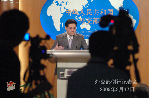 2009年3月17日下午,外交部發言人秦剛主持例行記者會,就朝鮮總理訪華、六方會談、巴基斯坦政局等回答記者提問。