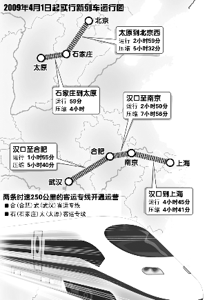 4月1日,全國鐵路開始實行新的列車運行圖,屆時全國新開行動車組41對,整體運能提高10.6%。鐵道部將時速250公里合武客專、石太客專的開行,視為此次調圖最大的亮點。