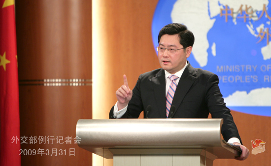 2009年3月31日下午,外交部發言人秦剛舉行例行記者會,就朝鮮半島局勢、中法關系、中印關系、阿富汗問題等答問。