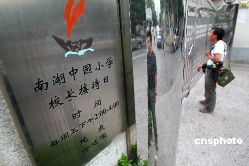7月1日晚7時左右,依然有記者在北京南湖中園小學門口守候。當晚8時,北京市衛生局通報,該市朝陽區南湖中園小學發生一起學校聚集性發熱疫情,在已追查到的16名發熱學生中,共有7人被確診為甲型H1N1流感確診病例。現共查到93名學生、20名教師和41名家長,共154人一代密切接觸者,已進行集中醫學觀察。目前該校已提前一周放假,其密切接觸者已實施集中醫學觀察。 中新社發 富田 攝
