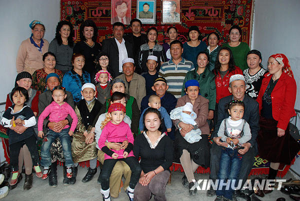 這是近年拍攝的阿尼帕的家庭聚會。7月的新疆阿勒泰草原上鮮花盛開,新疆首屆十大杰出母親阿尼帕含辛茹苦收養(yǎng)漢、回、維吾爾、哈薩克4個民族10個孤兒的事跡傳遍了天山南北。加上自己親生的9個兒女,70歲的阿尼帕老人和她這個民族團結(jié)的大家庭,已有維吾爾、漢、回、哈薩克、塔塔爾、烏茲別克6個民族的180多口人,他們的故事感動了2000多萬新疆各族人民。新華社記者徐軍峰攝