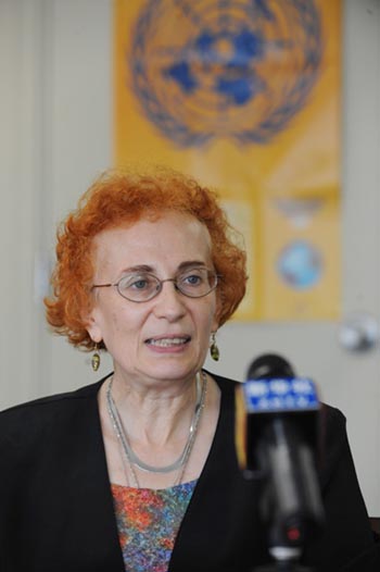 聯合國人口司司長哈妮婭·茲羅特尼克接受新華網記者專訪。新華社記者申宏攝