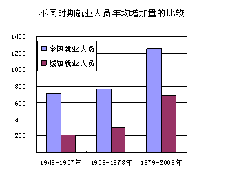 新中國成立以前,我國基本上處在農(nóng)業(yè)社會,城鎮(zhèn)就業(yè)比例很低。1949年,全國城鎮(zhèn)就業(yè)人員只有1533萬人,僅占全國就業(yè)人員的8.5%,絕大部分勞動者在鄉(xiāng)村就業(yè)。新中國成立后,隨著國民經(jīng)濟的逐步恢復,特別是工業(yè)化進程的加快,在城鎮(zhèn)大量失業(yè)人員得到安置的同時,也吸引了大量的農(nóng)村勞動力到城鎮(zhèn)就業(yè)。到1962年末,城鎮(zhèn)就業(yè)人員已達4537萬人,占全國就業(yè)人員的比重上升到了17.5%。改革開放后,隨著經(jīng)濟的持續(xù)、快速發(fā)展和城市化進程的不斷加快,城鎮(zhèn)就業(yè)人員迅速增加,到2008年我國城鎮(zhèn)從業(yè)人員已經(jīng)達到30210萬人,占全國就業(yè)人員的比重達到了39%。