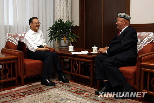 9月14日,國務院總理溫家寶在北京中南海總理辦公室與新疆維吾爾族農民達吾提·阿西木會面。新華社記者姚大偉攝