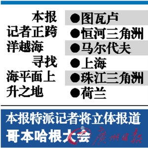 為立體報道這次大會,我們派出的采訪團已經奔赴哥本哈根,將及時跟蹤報道扣人心弦的大會進展。與此同時,我們另外派出多路記者,同時奔赴地球上受海平面上升影響的地方。