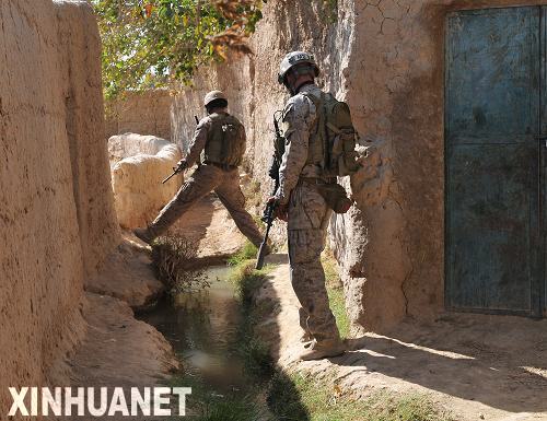 資料圖片:11月3日,兩名美軍士兵在阿富汗西部法拉省的一處谷地巡邏。新華社發