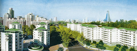 韓聯社近日報道說,根據朝鮮領導人金正日的指示,朝鮮計劃2012年之前在平壤建10萬套住宅,萬壽臺街重建項目就是其中一環。萬壽臺街位于平壤中心區,泛指萬壽臺議事堂(相當于中國的人民大會堂)周邊地區。韓聯社稱,去年7月之前,萬壽臺街還是上世紀60年代建的5層以下的舊公寓園區(600多戶),但最近搖身一變成了6-18層的新型公寓園區(800多戶)。雖然住戶數量沒有大幅增加,但每戶的居住面積卻擴大到100平方米以上,綠化面積也占到了50%以上。