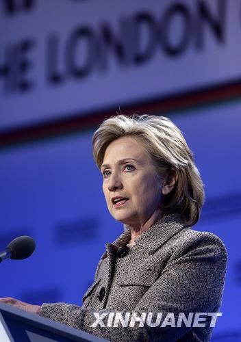 1月28日,在英國首都倫敦,美國國務卿希拉里在阿富汗問題國際會議結束后出席新聞發布會。新華社發
