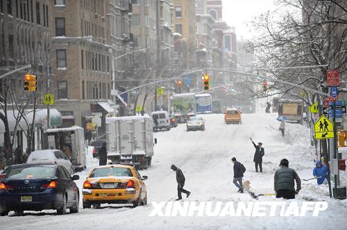 紐約市部分地區26日中午時分積雪厚度超過53厘米,預計降雪還將繼續。