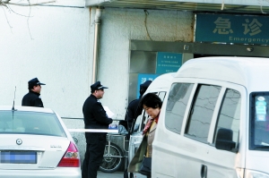 23日下午,警方在懷柔第一人民醫院急診室外拉起警戒線