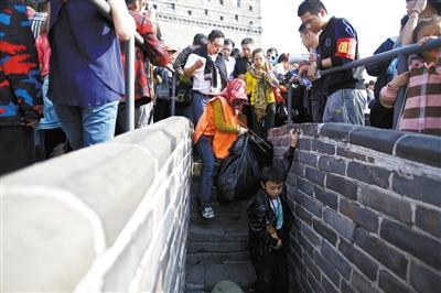 10月6日,黃金周第六天,北京八達(dá)嶺長城景區(qū)累計(jì)游客人數(shù)達(dá)35.66萬人,產(chǎn)生垃圾共計(jì)109噸。(新京報(bào)記者 周崗峰 攝影報(bào)道)