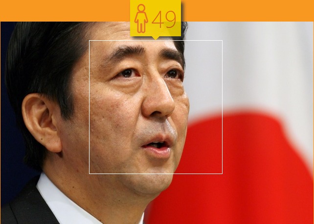 照片時間:2006年。2006年9月20日,日本執政的自民黨舉行總裁選舉,51歲的安倍晉三當選,當年12月當選日本首相。“顏齡”測試給出的結果是49歲,基本吻合。