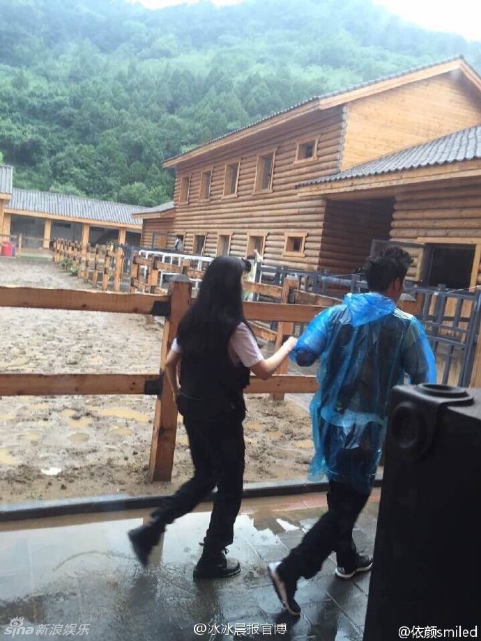 據香港媒體報道,20日,有網友拍得范冰冰和李晨疑似拍攝真人秀節目的照片,照片中穿上雨衣的李晨拖著范冰冰手在農莊小跑步,十足的偶像劇浪漫情節。