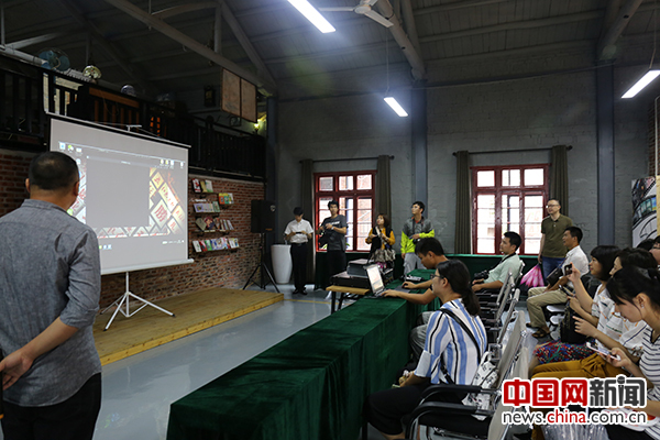 贛坊1969園區(qū)多功能辦公室內(nèi)記者和游客在觀看創(chuàng)意短片。中國網(wǎng) 郭澤涵攝