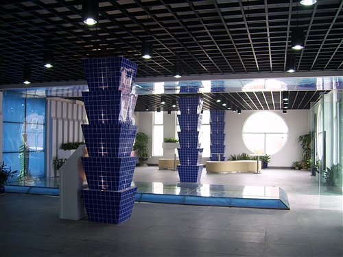 藍色立體柱 突顯出現代流線風格