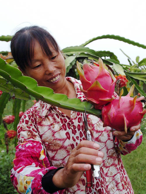2007年10月10日,欽州市欽南區一農婦在采集火龍果。