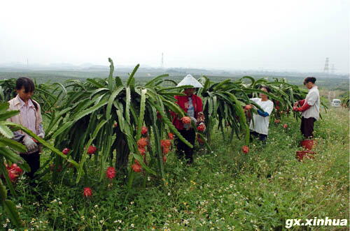 自2000年起,廣西欽州市欽南區從馬來西亞、臺灣等國家和地區引進火龍果品種進行培育種植,現已建成了我國最大的火龍果種植標準化“一類”基地,種植面積已發展到5000多畝,年產量達到20多萬公斤,產品遠銷香港、韓國、加拿大等地,帶動當地群眾年人均增收達到200元以上。火龍果產業在欽南區已形成一種新型的可持續發展的現代農業項目。火龍果又稱紅龍果,原產中美州,因含有大量營養性物質和治療性物質而受到人們青睞。
