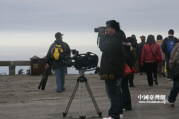 不顧一路旅途的疲憊,也不顧山上冰冷的雪霜,臺灣媒體團一路直上峨眉金頂。“天上金頂,天下峨眉”,金頂上云霧飄渺,有如人間仙境。媒體團的記者們一下車就投入到令人向往的云中仙境中,感嘆大自然的鬼斧神工和山水間的寫意勾勒。才剛見到峨眉山的一角,臺灣記者們就已經迫不及待地擺開架勢,支起攝像機、照相機,想把看到的全部美景都捕捉下來。