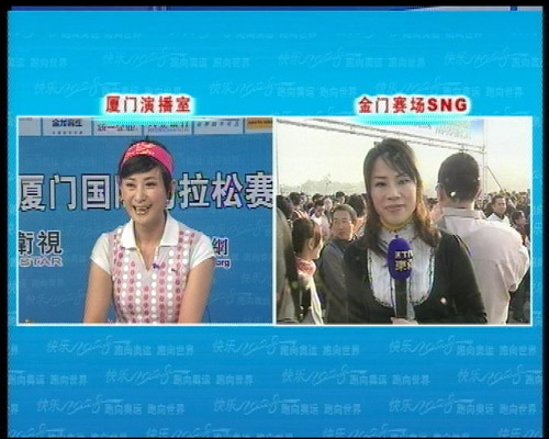 為了讓兩岸民眾在第一時間目睹“兩門”馬拉松的最新賽事,廈門衛視和臺灣東森電視合作,用閩南話SNG連線直播這一賽事。臺灣東森主播黃子玲在金門做現場播報,這也是兩岸媒體聯手,第一次以SNG技術,直播兩岸馬拉松賽這樣一個大型體育節目。(廈門衛視記者 李艷丹)