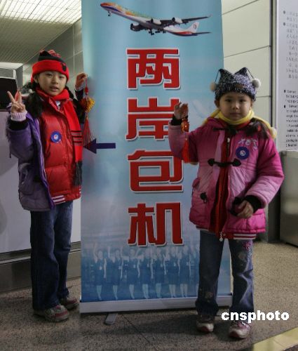 圖為東航MU五00七次航班。圖為搭乘今年首班兩岸春節(jié)包機的臺灣兒童。