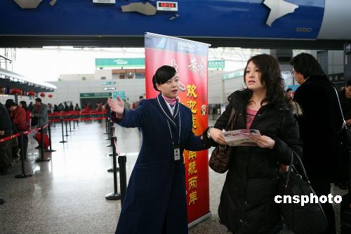 今年,東航采用安全舒適的A330系列飛機共執(zhí)行12個浦東—臺北的往返航班,共計24班航班,再次成為參與兩岸包機飛行最多的航空公司。東航包機機艙被對聯(lián)、年畫、中國結(jié)等裝扮一新,到處洋溢著過年的喜慶氣氛,還采取了“運力優(yōu)先、除冰優(yōu)先、疏導(dǎo)優(yōu)先”的保障措施,確保兩岸春節(jié)包機安全順利。