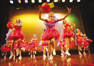 昨天下午,紅蜻蜓少兒藝術團在表演群舞《紅紅的日子》。盧春雨 吳映 攝