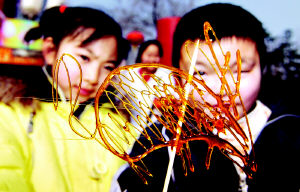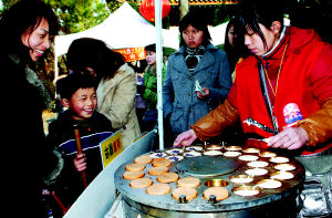 走進影視基地,只見青石板鋪就的路上大紅燈籠高高掛起,主大街的兩旁擺滿了各色各樣的攤位,出售各種臺灣美食和工藝品,十足的寶島風情。這邊,在電視劇《轉角遇到愛》中名聲大振的臺灣特色小吃蚵仔煎在廚師的手中正散發出陣陣香味,讓不少人垂涎欲滴,駐足購買;那邊,臺灣正宗脆皮臭豆腐成為了不少老人的最愛,在一旁的游客休息區里,幾個老太太正手拿幾串炸得金黃酥脆的臭豆腐大快朵頤;再遠一點,彩色的棉花糖、晶瑩剔透的糖葫蘆,以及各種動物造型的麥芽糖都是孩子們的寵兒,買上一個比自己腦袋還大的棉花糖邊吃邊看,真是甜在心頭。